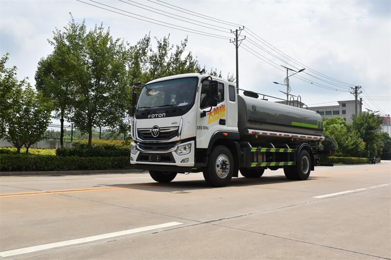 福田15噸灑水車標(biāo)配前噴(鴨嘴)、后沖、后灑、側(cè)噴、后置式工作 平臺(tái),平臺(tái)上配置綠化水炮(可 360°旋轉(zhuǎn),既可以調(diào)成柱狀,也可 以調(diào)成霧狀,更可以調(diào)成直沖狀、大雨、中雨、小雨、毛毛雨),配 備優(yōu)質(zhì)大功率專用灑水泵(可自吸自排,可從河里或池塘抽水到罐體), 取力器,雜物過濾網(wǎng),消防接口,自流球閥系統(tǒng)、取力器、球閥、濾網(wǎng) 均為國家標(biāo)準(zhǔn)產(chǎn)品,主管道加粗,法蘭墊、法蘭盤加厚,大通徑球閥。 整體具備性能優(yōu)良安全可靠、效率高、流量大、維修方便等特點(diǎn)。 二.產(chǎn)品配置 1.底盤配置: 發(fā)動(dòng)機(jī)玉柴 200 馬力(四缸),法士特 8 檔變速箱,軸距 4500,前 橋 4.5T,后橋 10T,10.00 鋼絲胎,斷氣剎,空調(diào),電動(dòng)玻璃,ABS。