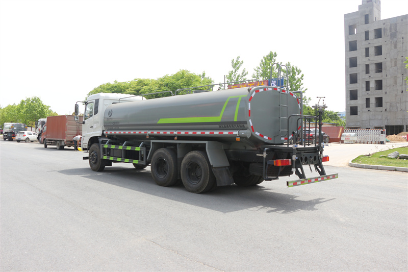 東風天錦后雙橋20噸灑水車配置: 駕駛室東風天錦 D530-VR,發動機龍擎 260 馬力,大同 7 檔, 速比 5.143,軸距 4350+1350 mm,東風德納橋:前橋 4.5T / 后橋 10T ×2,輪胎 11.00R20 鋼絲胎,東風原廠空調,中控,電動玻璃