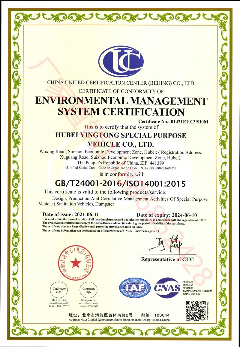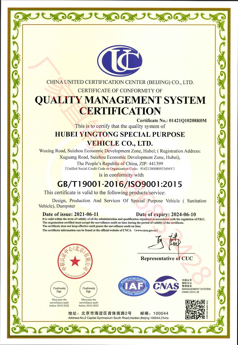 湖北盈通灑水車(chē)廠(chǎng)家公司資質(zhì)