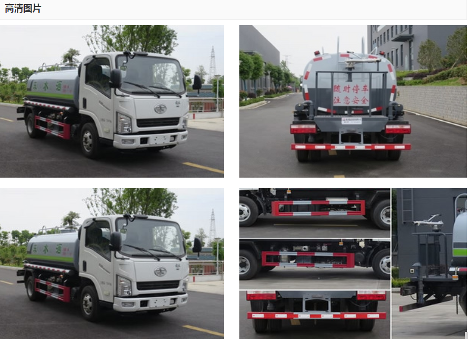 國(guó)六解放5噸灑水車(chē),罐體容積5立方米,該車(chē)具有免征公告(可免交車(chē)輛購(gòu)置稅)。采用武鋼4mm優(yōu)質(zhì)碳鋼板一次卷壓成型,完全做到無(wú)縫成型。罐體內(nèi)設(shè)多道防波隔板,采用高壓氣體試漏檢測(cè),使罐體具有強(qiáng)度高,重心穩(wěn),車(chē)輛運(yùn)載安全平穩(wěn)。罐體外表為烤漆,罐體及各保險(xiǎn)杠貼紅白色視覺(jué)反光條,罐體兩側(cè)噴“綠化灑水車(chē)”字樣(可按您的要求噴繪字樣),罐體顏色出廠為上白下綠或上白下藍(lán)(可按您的要求噴繪顏色)。采用CA1070K2L3E6B底盤(pán),錫柴130馬力發(fā)動(dòng)機(jī),外形尺寸:6200,5995 * 2000 * 2400,2700 (mm),六檔變速箱,總質(zhì)量(kg) 7360 額定質(zhì)量(kg) 3930 整備質(zhì)量(kg) 3300 ,軸距3360mm,配40-50大功率水泵,帶前噴,后灑,側(cè)噴,水炮,后工作平臺(tái)。