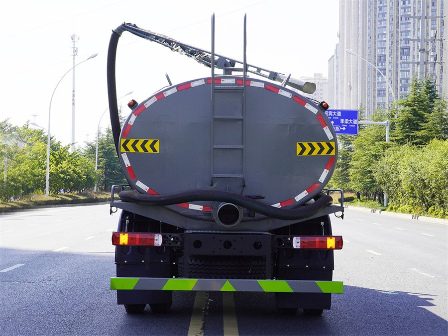主要專用裝置:罐體及吸糞裝置總成,主要用于抽排運污水、糞便、泥漿等液態污物;罐體總容量:12.34立方米;罐體有效容積:11.73立方米;罐體外形尺寸(長×長軸×短軸)(mm):5200×2350×1500,4400×2350×1600;側、后防護材料均為:Q235碳鋼,連接方式均為:螺栓連接,后部防護截面尺寸(mm):120×50,后部防護離地高度(mm):470;ABS系統型號:ABS-VI.E;生產企業:廣州瑞立科密汽車電子股份有限公司.ABS系統型號:ABS-E;生產企業:威伯科汽車控制系統(中國)有限公司,ABS系統型號:3550D-1010;生產企業:東科克諾爾商用車制動系統(十堰)有限公司.采用4500,3950mm軸距.選裝側部及后部出口樣式;隨底盤選裝限速裝置,限速90km/h.隨底盤選裝駕駛室,選裝尿素罐位置,選裝電瓶位置.選裝罐體頂部防溢閥裝置樣式.