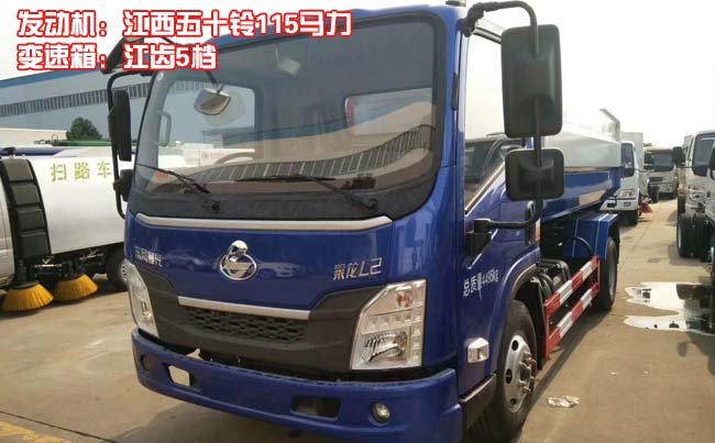 東風(fēng)柳汽L2掛桶垃圾車,L25單排駕駛室,配江西五十鈴115馬力發(fā)動機,江齒5檔變速箱,Ф265離合,軸距3360,5T后橋/5.571,190(5)車架,120L塑料油箱,7.00R16,固定式駕駛室懸置、扭桿式翻轉(zhuǎn)、電動玻璃升降器、遙控鑰匙+中控鎖(四鎖合一)、液晶儀表、空調(diào)、斷氣剎、ABS。