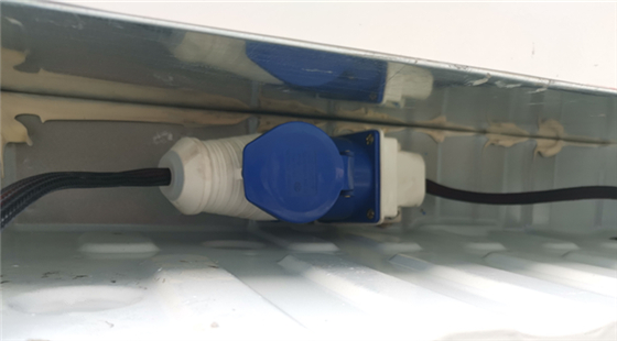 制冷機(jī)組可選帶外接電源裝置,停車熄火的時候可以插220V電制冷。